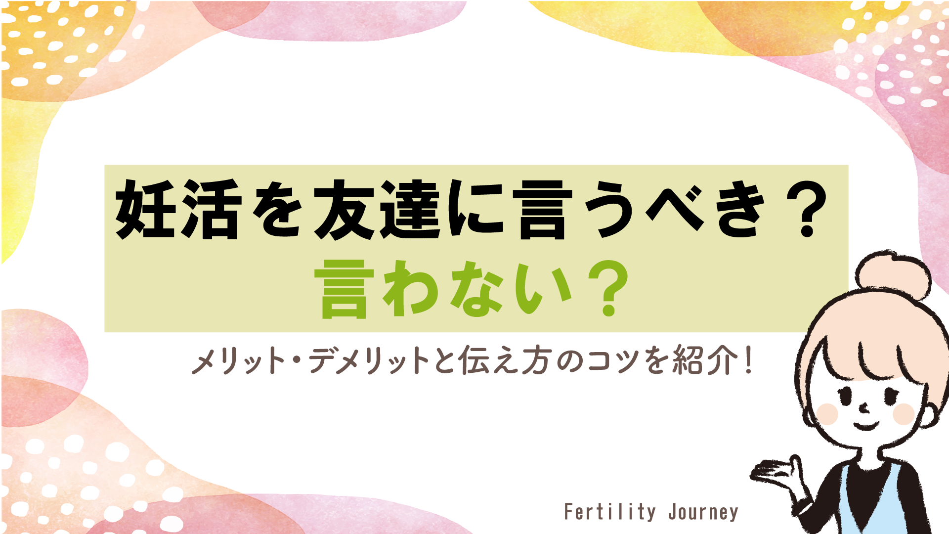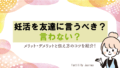 妊活を始めたとき、友達に話すべきか迷うのは当然のことだと思います。話すことで得られる支えもあれば、人間関係に変化が生じる可能性も考えてしまいますよね。
