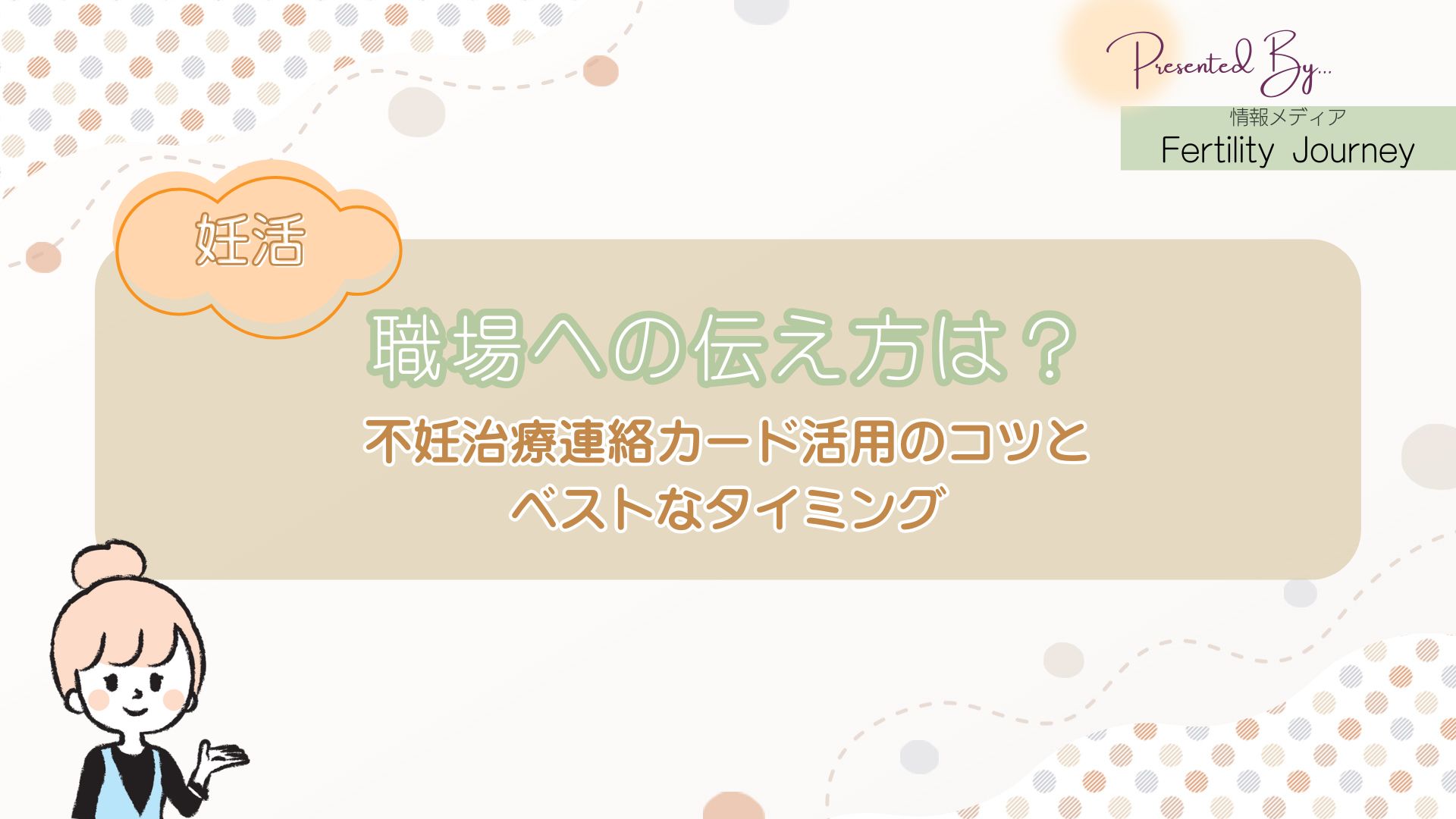 不妊治療を受けながら仕事を続けるとき、「職場に伝えた方がいいのかな?」「でも、どうやって話したらいいんだろう?」と悩む人も多いのではないでしょうか。
